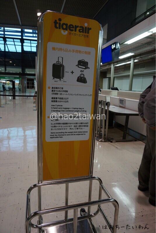 チェックが終わって、オッケーだと、タイガーエアのタグをつけてくれます。