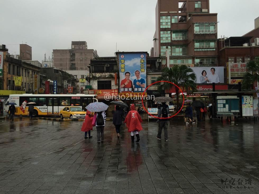 バス停の場所は駅を降りて、広場から見ることができますが、画像の右手にある道路手前の乗り場は九份からくるバスのための停留所です。じゃあ、九份(金瓜石行き)のバスにはどこから乗るんだって話ですが、以前は画像の赤丸で示したあたり、駅前広場の前にある道路を渡った頂好超市の横くらいに九份(金瓜石行き)へ向かうバス停留所があったのですが、2016年1月時点では無くなっています。