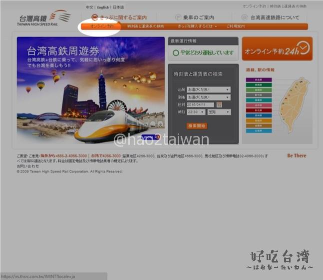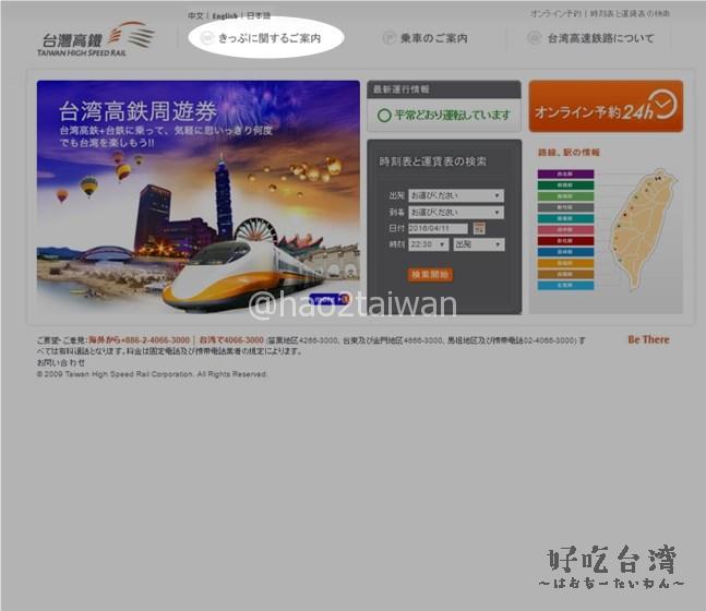 台灣高鐵(台湾高速鉄道)のWEBサイトにいく