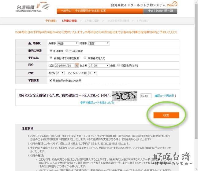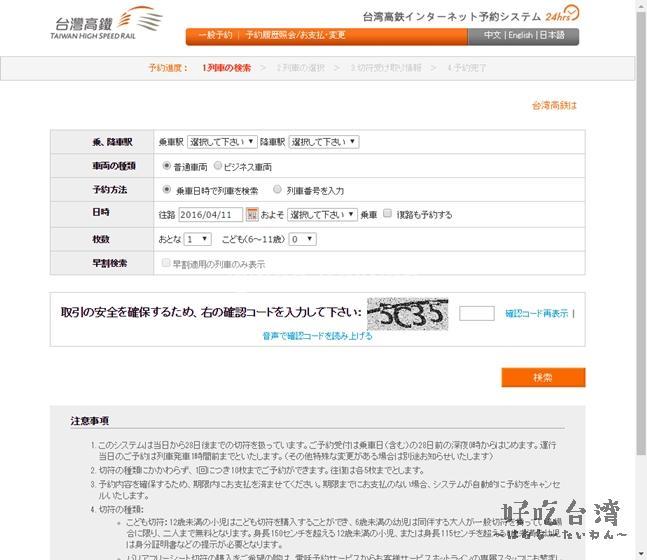台灣高鐵は、日本語サイトが用意されていて安心感があります。