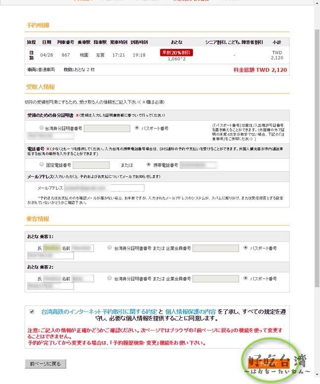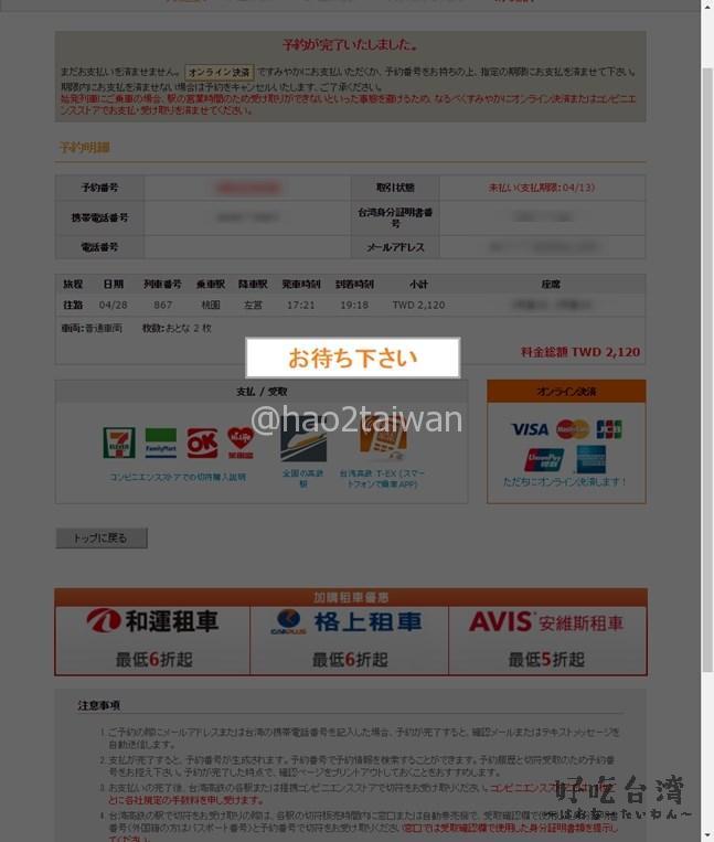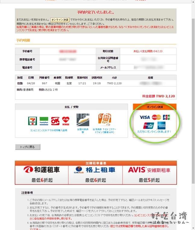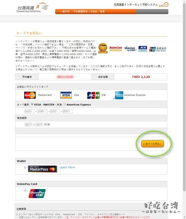 台灣高鐵(台湾高速鉄道)の切符をオンラインで事前購入の手順(クレジットカード編)