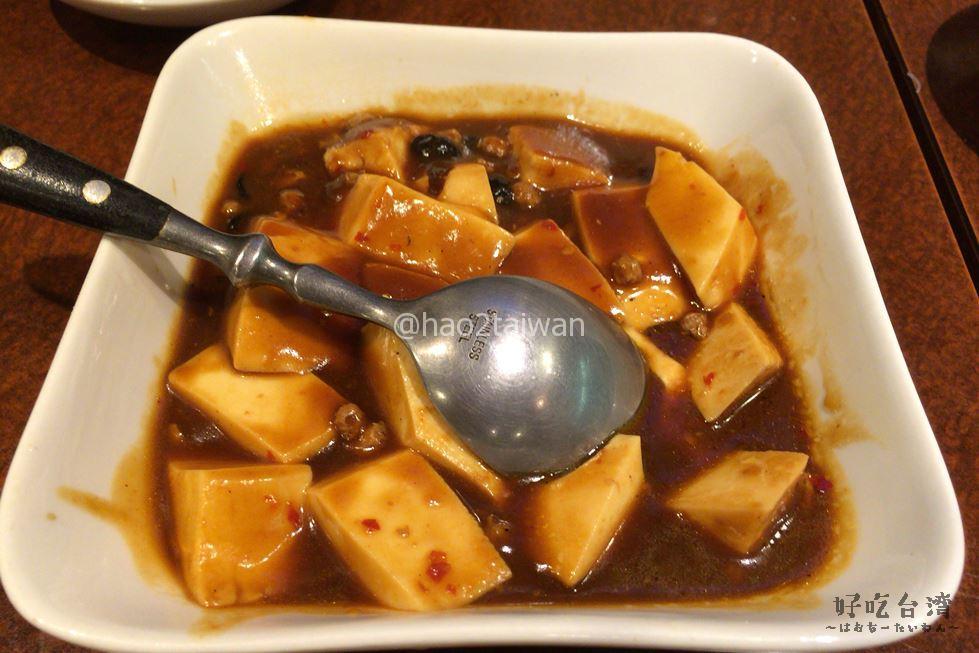 麻婆豆腐。定番の麻婆豆腐です。素食は、辛すぎたりするものは避ける傾向があるそうで、ピリッと微かに辛みはありますが、お子様でも安心して食べられる感じ。