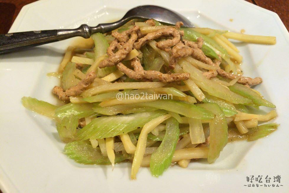 芹菜牛肉絲(豚肉とセロリの炒め物)。豚肉が使われていないおかげであっさり、そしてセロリの香りが程よい一品となっております。