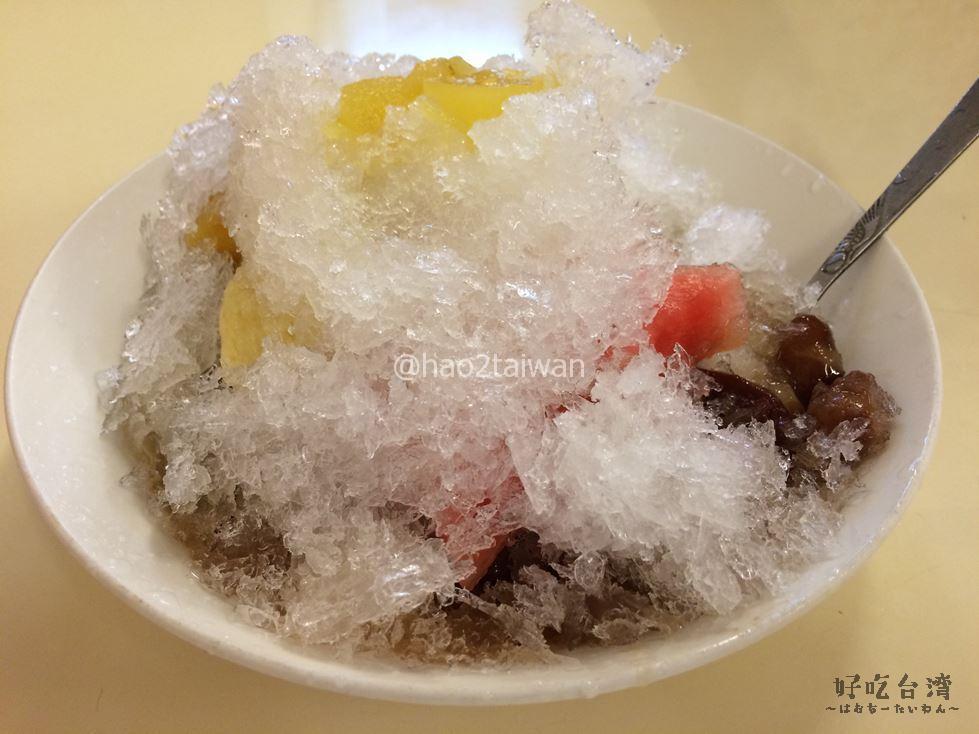 こちらはぺちこさん大好物の豆が入っている招牌蜜豆冰。氷で隠れていますが、紅豆が氷の下で隠れんぼしています。ほんのりと、安心する甘みが特徴のかき氷。こちらの氷は普通の水を使用されていまして、豆の風味を邪魔することがありません。