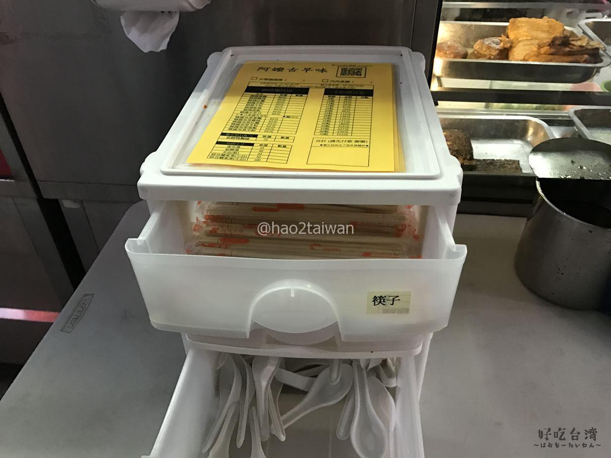 調味料の置かれている机には、箸とレンゲの引き出しがあります。こちらから箸とレンゲを必要な分だけ取っていきましょう。