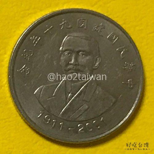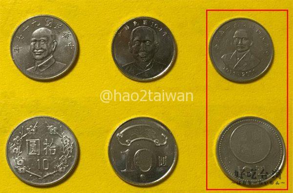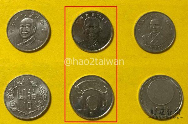 真ん中の10元硬貨は、台湾成立100年を記念して発行された硬貨のようです。