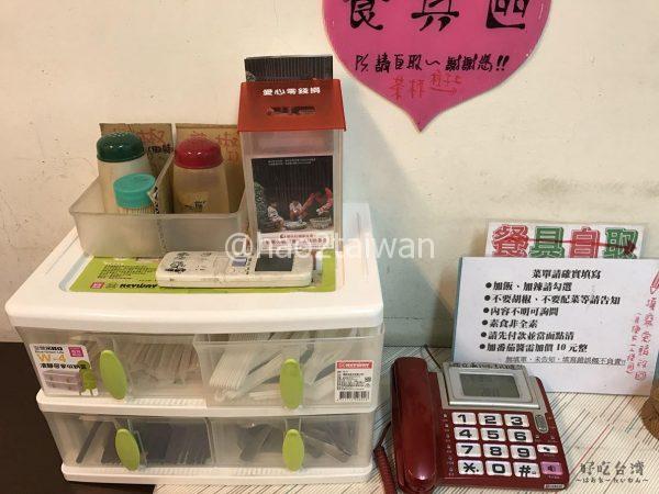 着席後は、セルフサービスタイム。スプーン、レンゲ等の食器類、調味料は、一か所に纏められていますので、勝手に取ってきます。