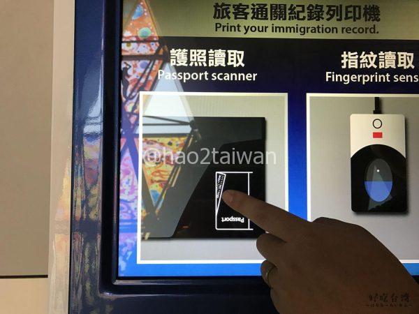 パスポートを置いた後、画面の左手に表示されている護照讀助(パスポート読み取り)を押すと、画面に指紋を読み取ります!みたいな表示がされます。