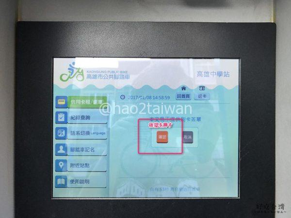 次の画面では、本交易不提供刷卡簽單(このレンタル方式の場合、利用明細は印刷できません)と表示されます。なお、返却時に利用明細が表示されますので、問題ありません。確認ボタンを押して次へ進めましょう。