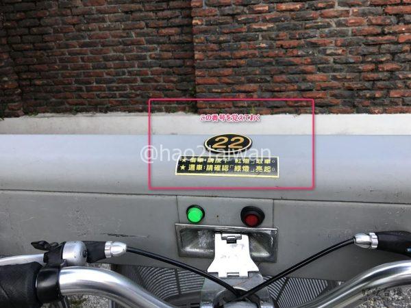 次に借りる自転車の番号を確認します。ここで確認した番号が貸し出し手続き時に必要です。