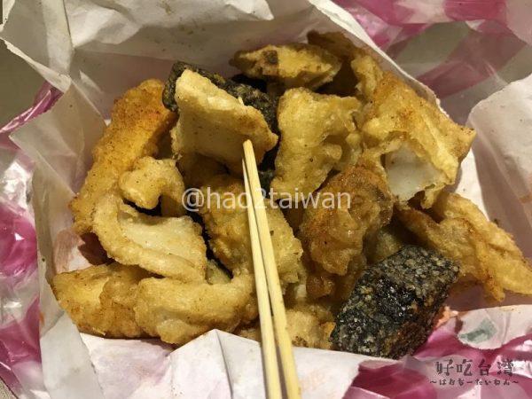 他にも、厚揚げのようなものや、さつま揚げのようなものも。ちなみに、写真の手前列の左から二つ目の白いやつは、甜不辣(台湾おでんの具材)です。揚げたものは、もっちりもちもちな食感が楽しめます。ぺちこが大好物だったりする。