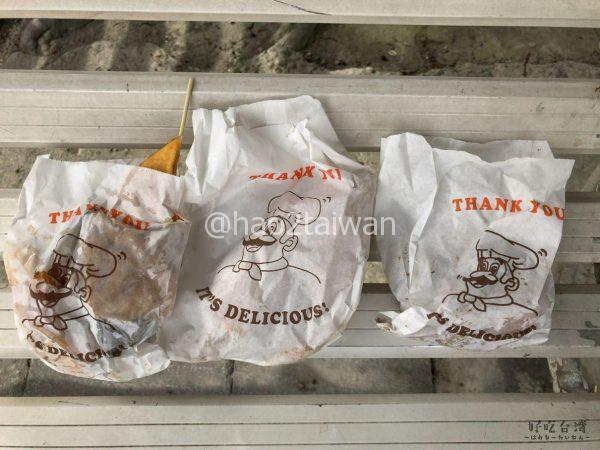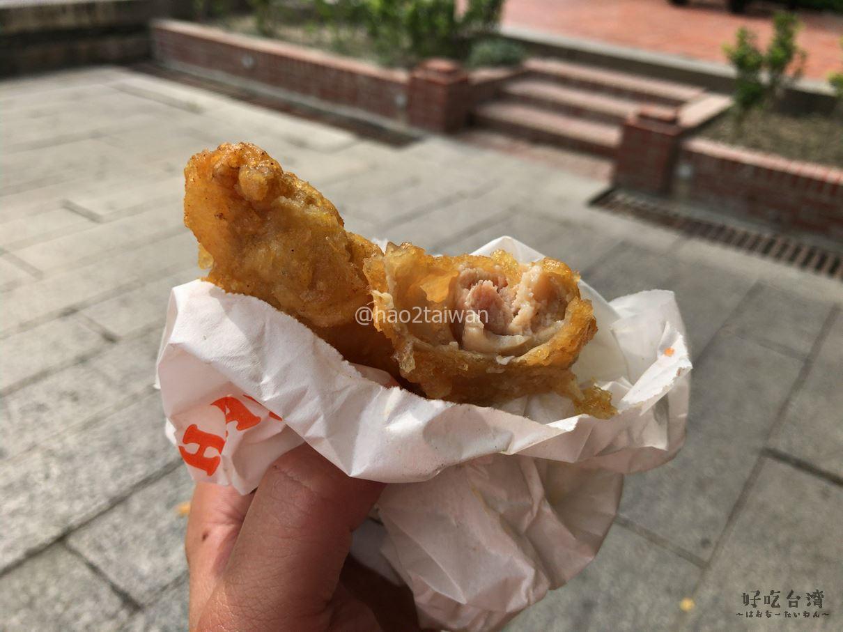 で、これが今回買った雞肉卷。二つで25元なり。この時は、食べやすそうな雞塊(鶏のから揚げ)も買いました。今思えば、雞翅(手羽先の唐揚げ)も買っておけば良かった・・・。
