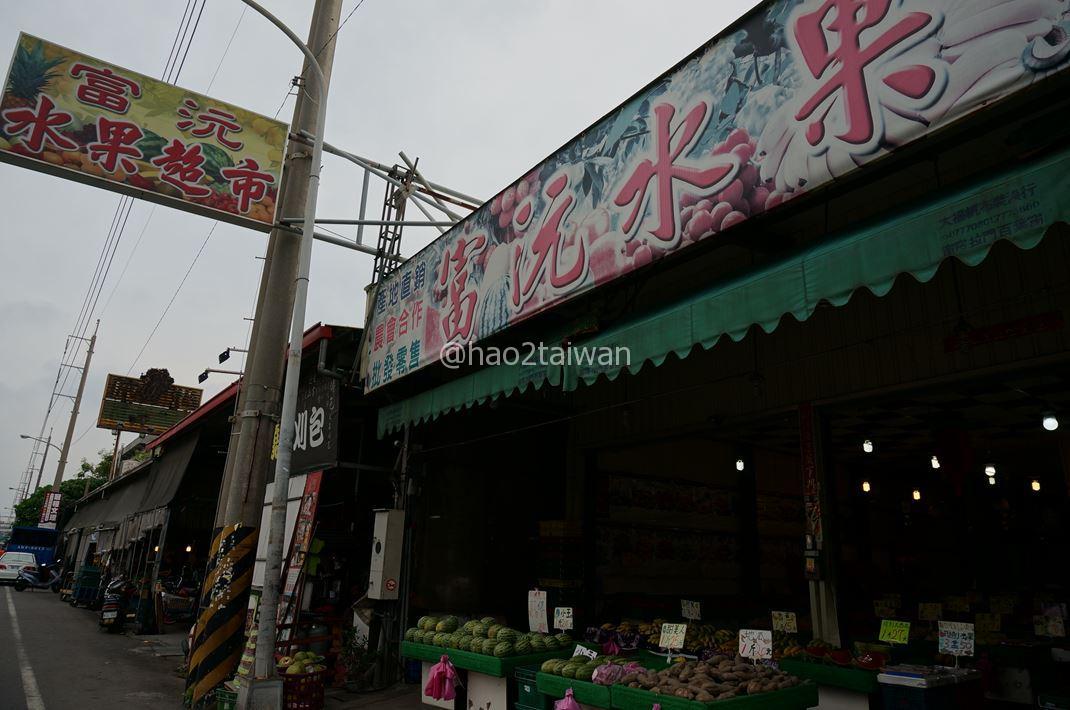 鹿港黃昏市場の正面は、大きな看板を出しているフルーツ屋さんが居を構えており、夜間時間帯でなければ見つけるのは容易かと思われます。