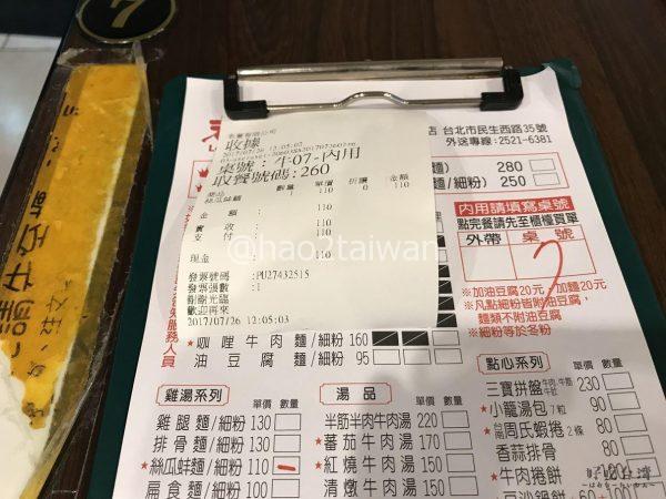 スープの味付けが薄目という事もあって麺とスープの絡み具合は、椒香麻辣牛肉麵等の味付けが濃い牛肉麺よりも一歩劣る感じはしましたが、値段も110元と比較的安めですし、油豆腐麵よりも優しい食べ口なので、ちょっと胃もたれしているんだよなあ・・・と言った時でも安心して食べられます。また、牛肉麺らしく、量が多いのは残金が乏しい時でも助かりますね。