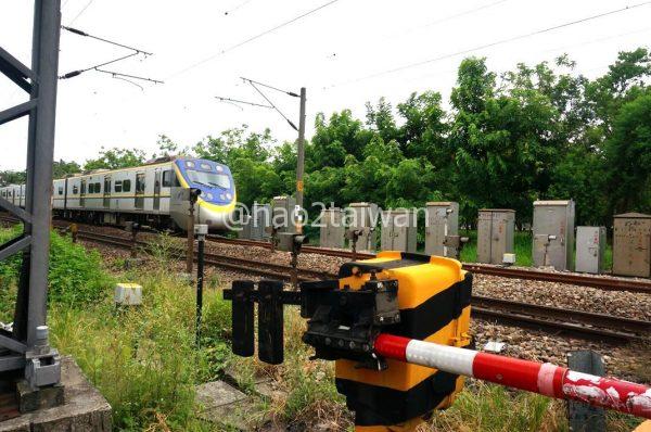 杏仁豆腐以外にも色々と食べてお腹がいっぱいになったぺちコンビ。今日も駅スタンプ収集に励みます。最初の目的駅である仁德車站へ向かうために1号線を南下中、踏切を見つけたので待機していると、沙崙方面から區間車が来ましたのでパシャリです。