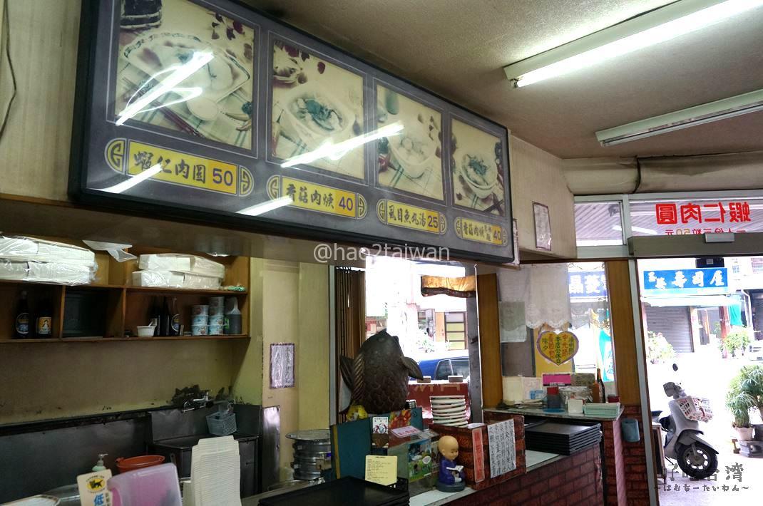 店内はこのように、昔ながらの食堂と言った様子。店頭では従業員の方が肉圓の仕込みをしていました。