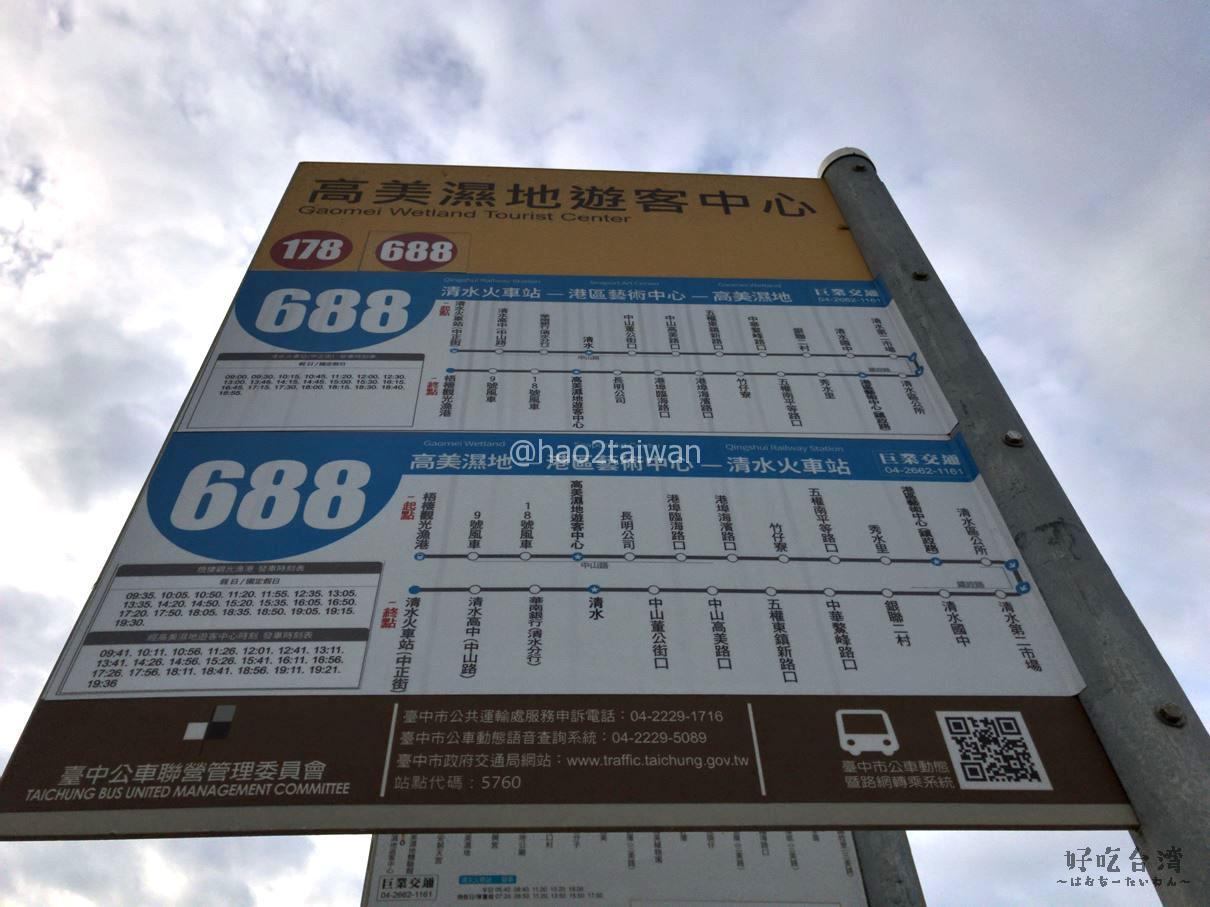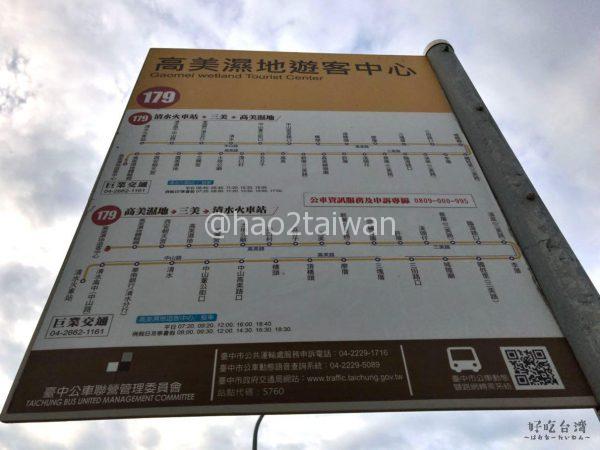 清水火車站(中正街)から高美濕地に直接向かいたい場合は、178(巨業交通)と同様に、この路線を利用したほうが良いかと思います。