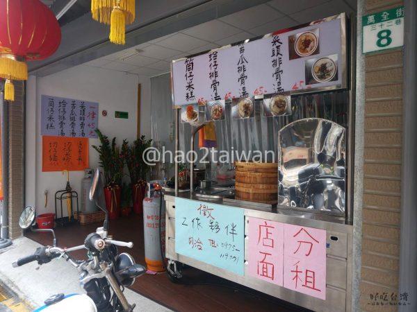 お店はこんな感じ。台南料理のお店らしい。店頭にある屋台には、店頭のスペースを一部貸し出している貼り紙がありました。