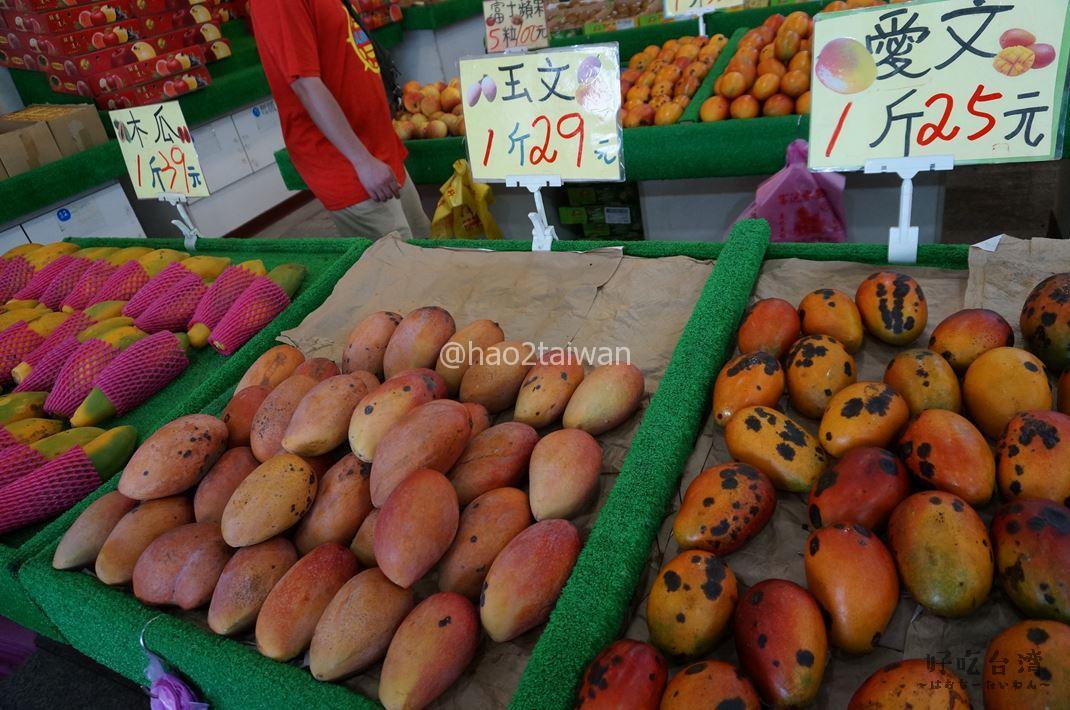 鹿港老街の途中にあった黄昏市場ではマンゴーなどの果物も安いし、お惣菜類も美味しい。