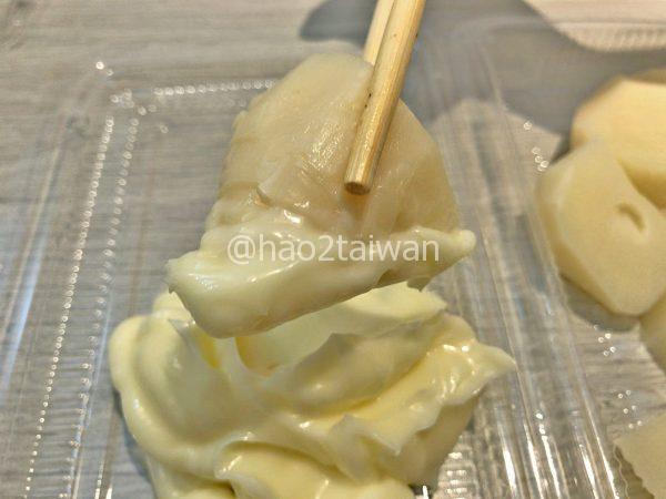 日本人からするとマヨネーズ感が不足していると感じられる台湾マヨネーズだからこそ生かせる台湾タケノコの風味。