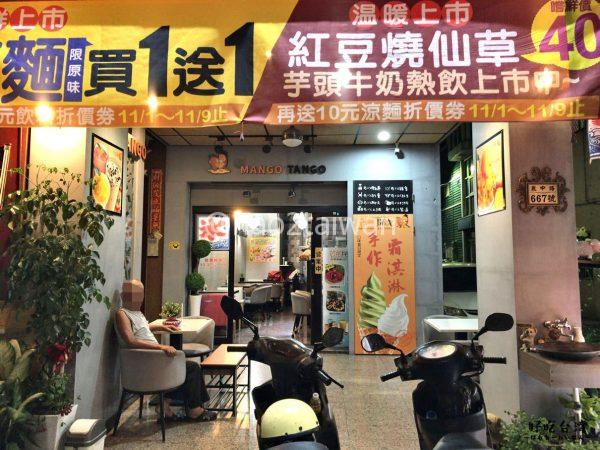 最終日となった高雄旅行を締めくくるためにお店を探していたぺちコンビが、ドリアンかき氷に続いて目星をつけたのは、マンゴー満載の看板からマンゴーに並々ならぬ自信を持っているとうかがえる「芒果探戈」。
