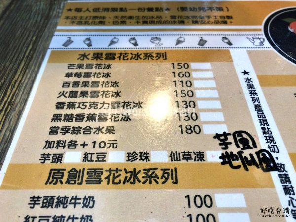 お店の前に置かれている看板には、燒仙草、芋頭、芋圓と、台湾冬季スイーツ戦線を沸かせる強者たちの名前が目につきます。この時点でマンゴーを食べることは出来ないであろうと考えておりましたが諦めるのはまだ早い。