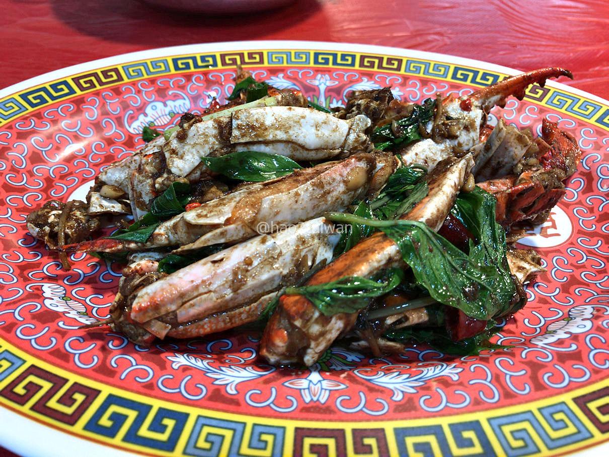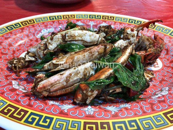 No.48美麗一品海產代煮では、新鮮蚵仔湯(カキのスープ)、龍鬚炒蔭醤(ハヤトウリの炒め物)、塔香炒蟹腳(ワタリガニのバジル炒め)の3品を注文しましたが、ぺちおがの中で一番印象に残ったのは、塔香炒蟹腳。