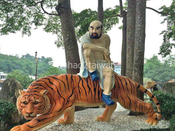 頭山門の近くでは、虎に乗ったお坊さんがお出迎え。否が応にも期待が膨らみます。