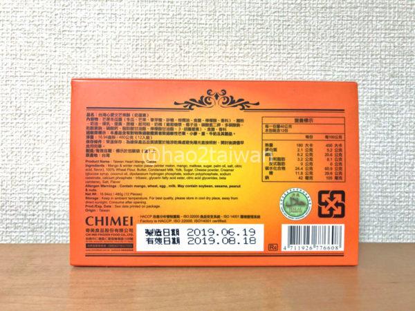 次に愛文芒果酥ですが、奇美桂圓酥と同様に12個入りの480グラム。なお、賞味期限は奇美桂圓酥と異なり2か月と短めです。