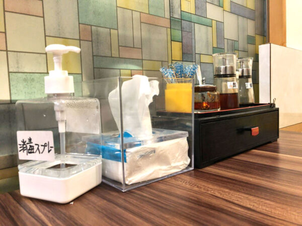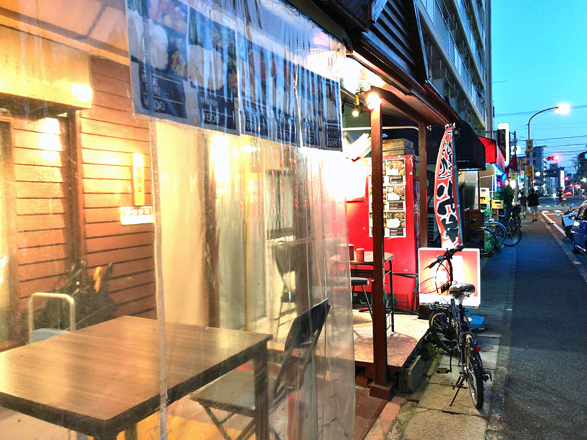 食事は店内だけでなく店外の座席で食べることもできそう。店外の座席は、道路との間に透明なビニールシートが掛けられていました。コロナ対策かな・・・?