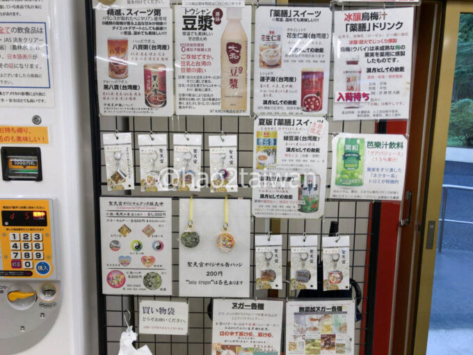 - 聖天宮キーホルダーをはじめとしたグッズや台湾ドリンクなどなど