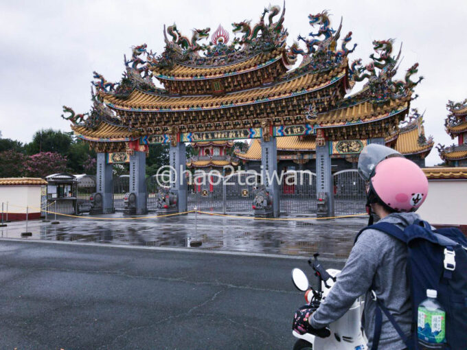 ほら、台湾で買ってきたヘルメットかぶって、台湾で買ってきたハンドルカバー(オバちゃん柄に見えるけど客家花柄)、聖天宮の風景。