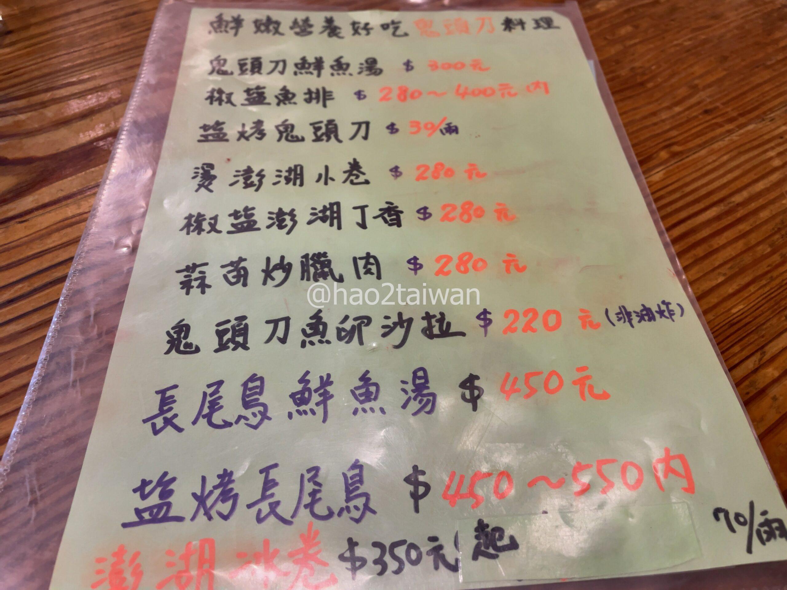 オススメ的な料理を記載した簡易メニューもあって、シイラ(鬼頭刀)といった台東名物の魚を調理したものも提供されておりかなり目移りします。