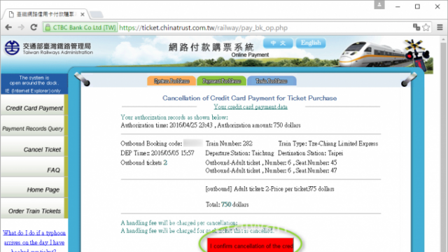 乗り物 台灣鐵路(台湾鉄道)でオンライン予約した切符をキャンセルしてみました *2019年10月現在の時刻表検索、オンライン予約の方法はこちらの記事をご覧ください。台灣鐵路(台湾鉄道)の時刻表検索・切符オンライン予約と運賃のクレジットカード支払い方法まとめ(時刻表検索編 2019年度版)台灣鐵路(台湾鉄道)の時刻表検索・切符オンライン予約と運賃のクレジットカード支払い方法まとめ(予約・決済編 2019年度版)台灣鐵路(台湾鉄道)の時刻表検索・切符オンライン予約と運賃のクレジ... 2020年2月26日 乗り物